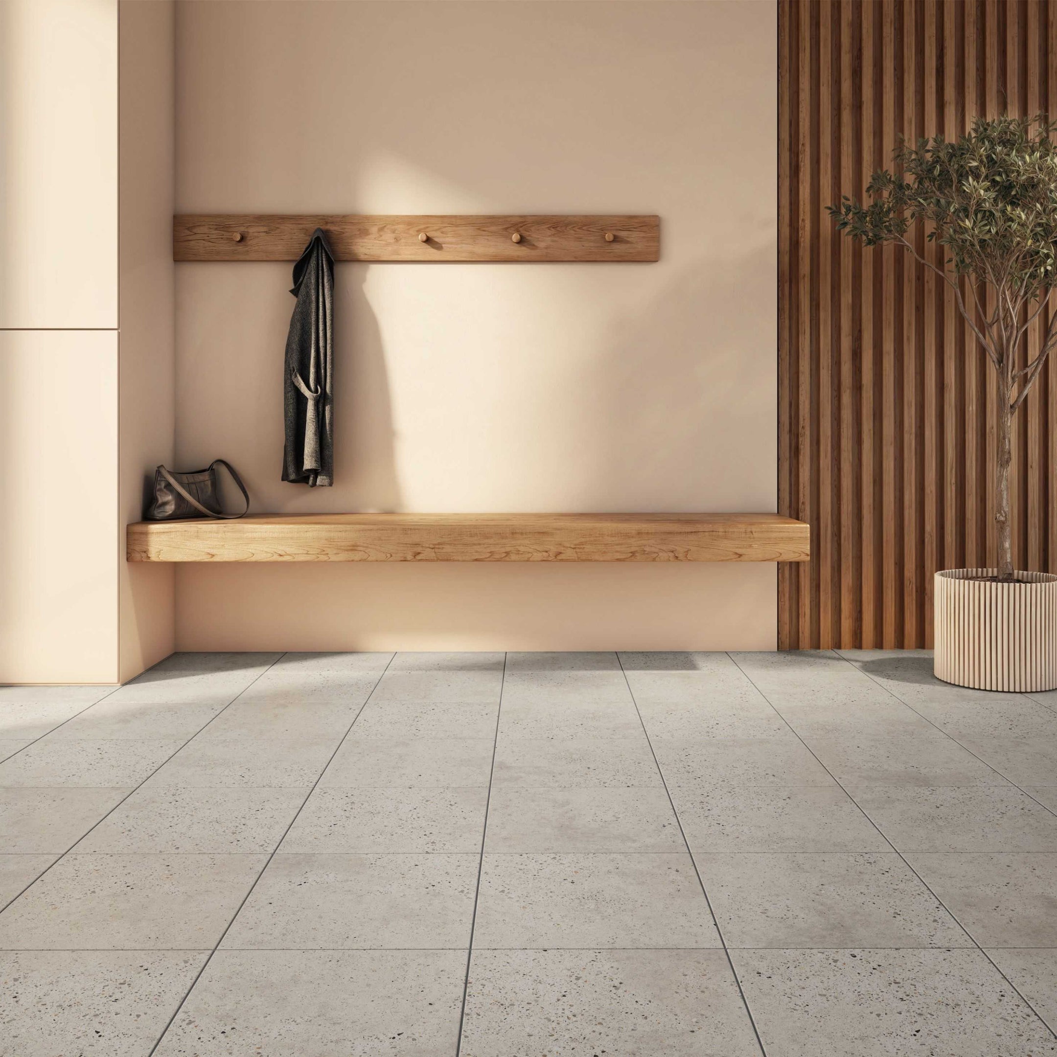 Déclinée en trois teintes neutres, cette porcelaine émaillée apportera mouvement et profondeur à vos espaces.