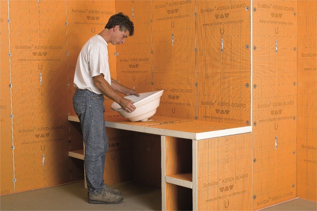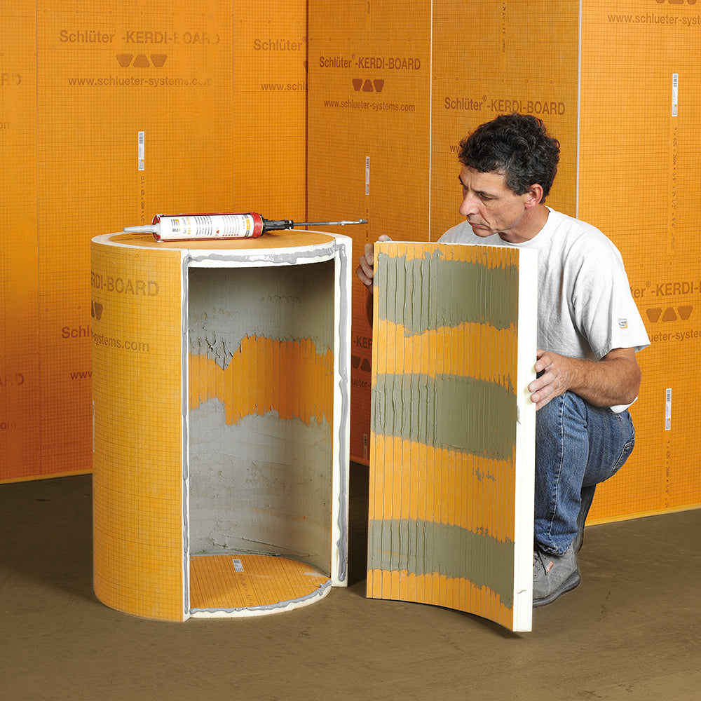 Panneau rigide : Schluter®-KERDI-BOARD est un support à carreler et un panneau de construction multifonctionnel, qui peut également servir dans des assemblages de carrelage étanches collés. KERDI-BOARD permet de construire rapidement et facilement des surfaces à carreler pour les douches, les contours et les plates-formes de bain, les comptoirs, les meubles-lavabos, les étagères, et plus encore!