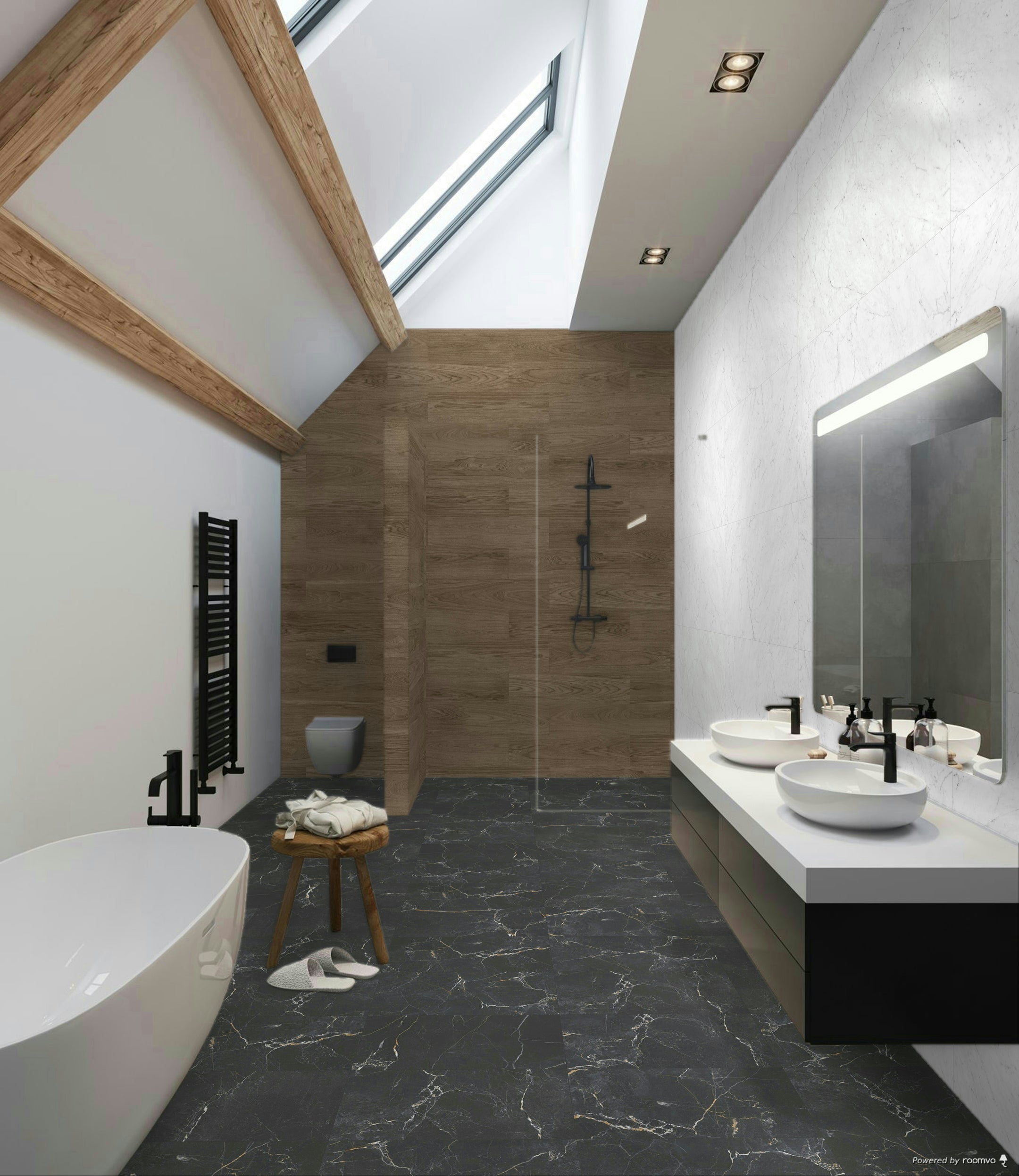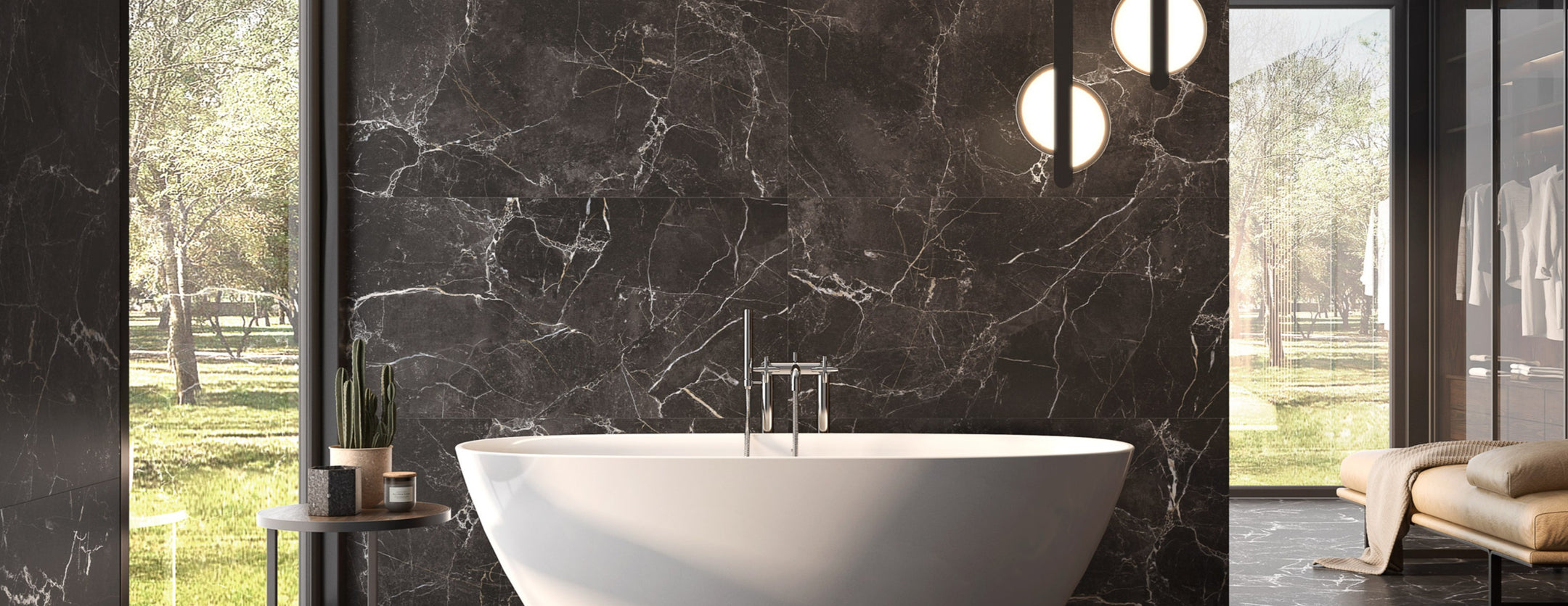 Cette porcelaine d'aspect marbre noir apportera une ambiance feutrée et sophistiquée à votre design.