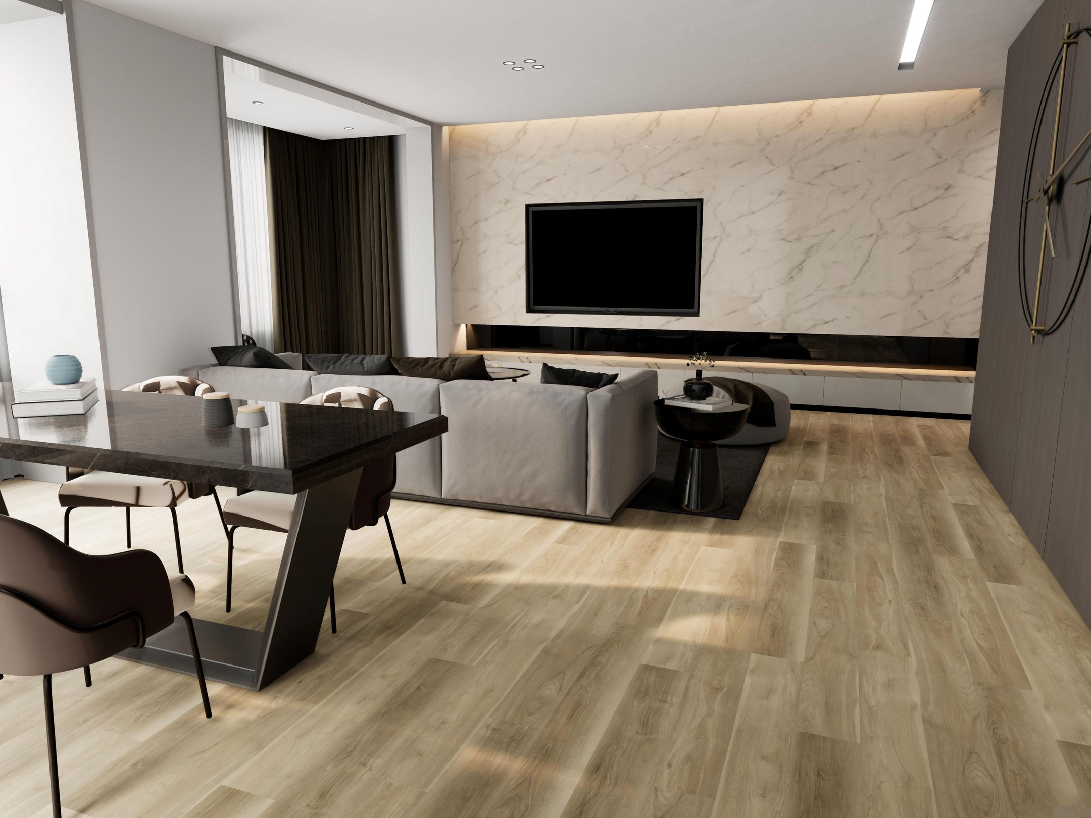 Ce plancher de vinyle, de qualité supérieure, est durable et facile d’entretien. De plus, il est résistant à l’eau et aux taches. Et son système "clic" permet une installation facile et rapide.