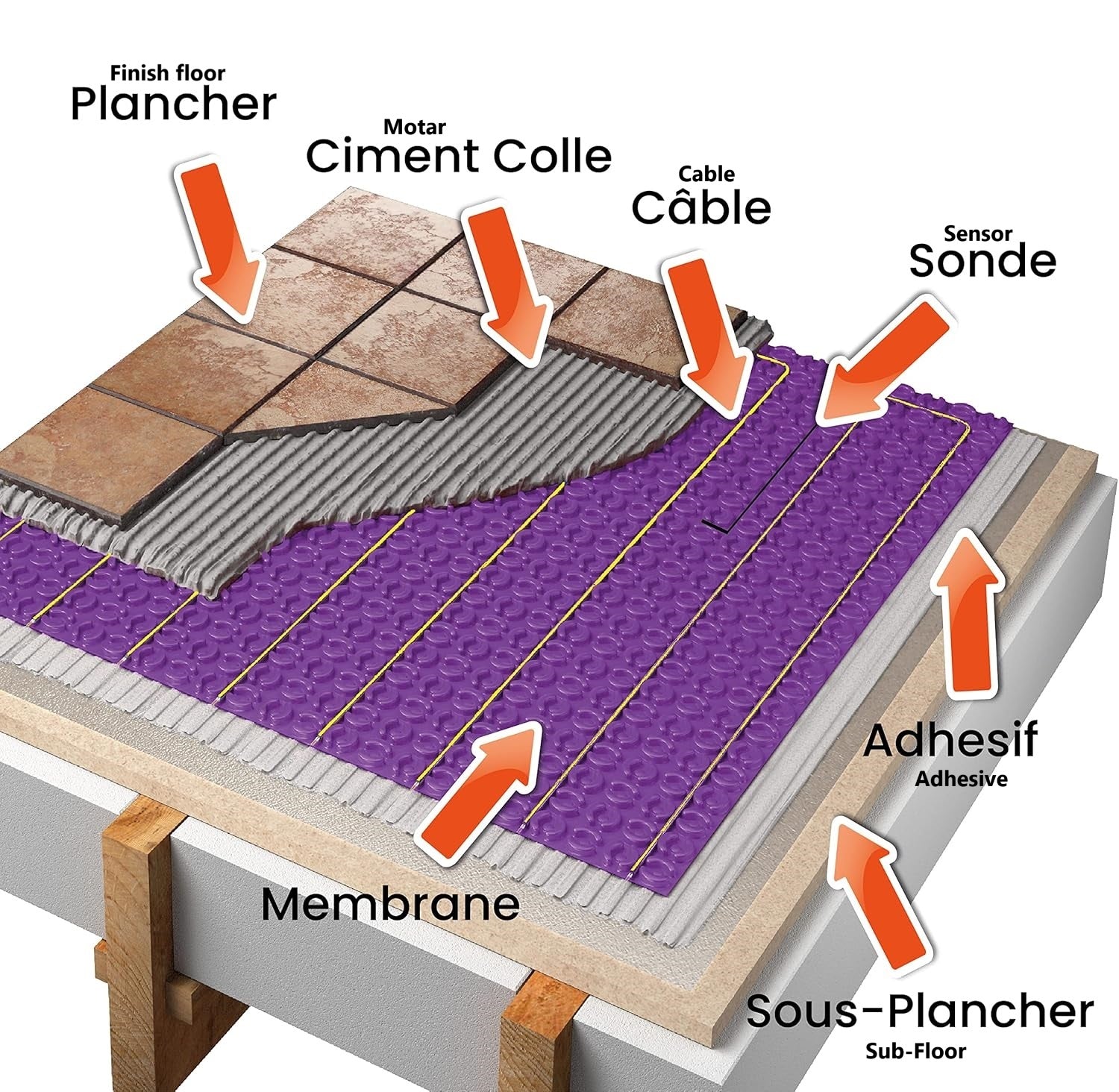 DrexMat Heat Membrane is a polypropylene sealing membrane separating cracks with rounded reliefs for heating floors. This evenly spaced relief membrane is designed to integrate and maintain a radiant electric heating cable such as the Drexma CSA 3.7W certified cable.