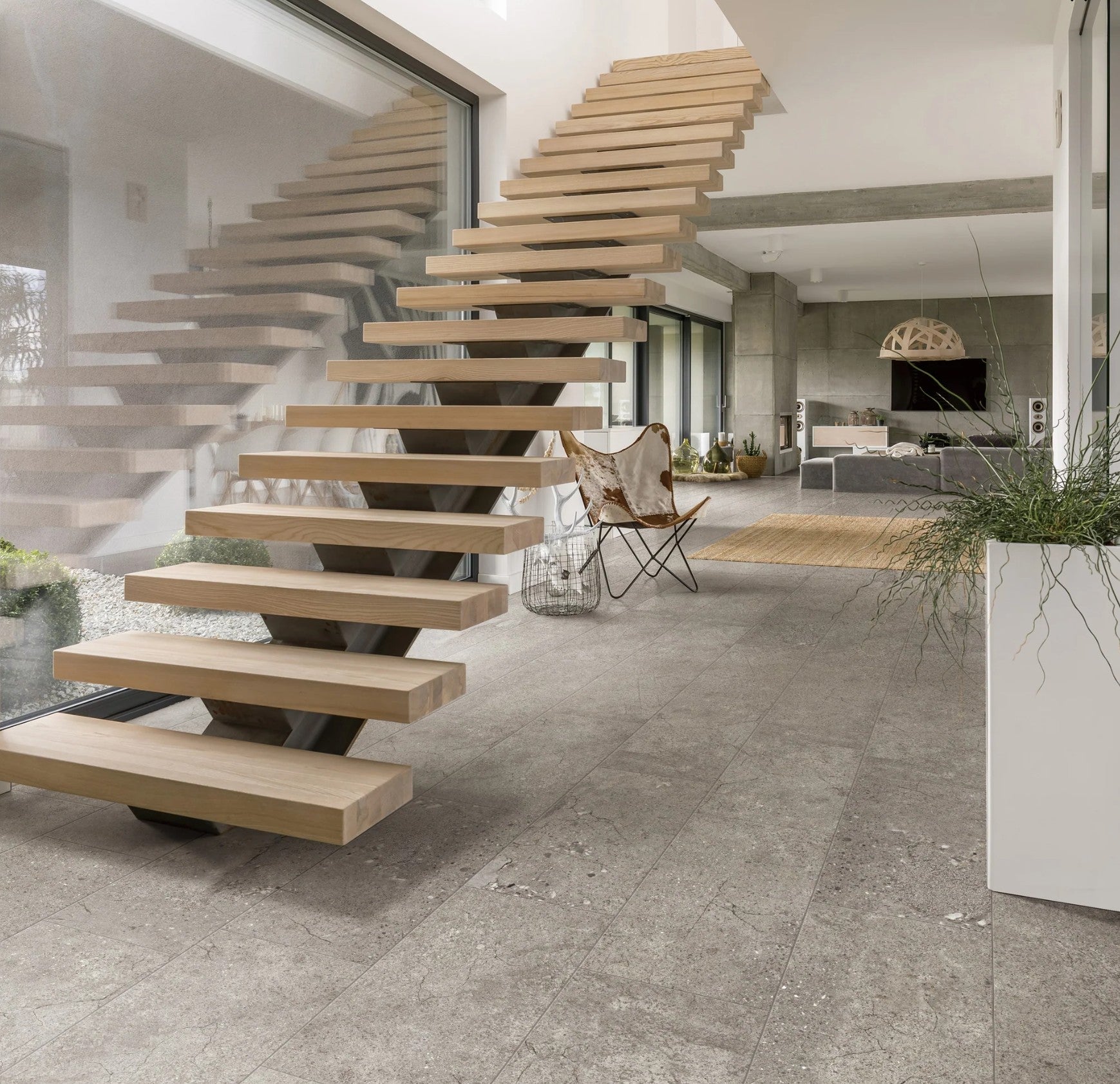 A concrete-effect porcelain collection that fits perfectly with current trends.