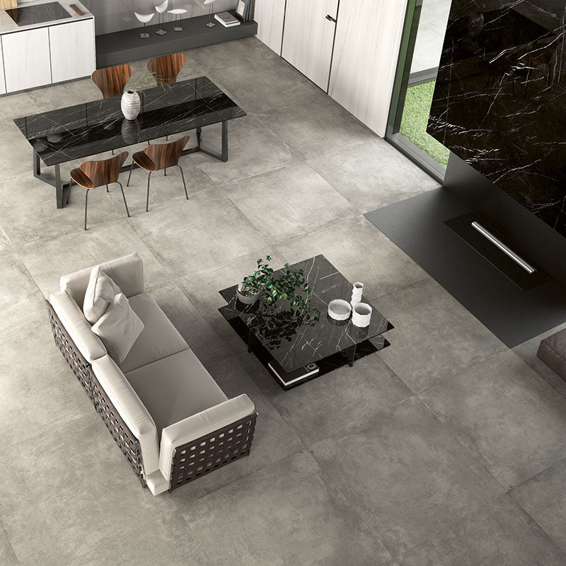 This porcelain collection is distinguished by its sandy texture that makes the concrete effect more soft and enveloping.