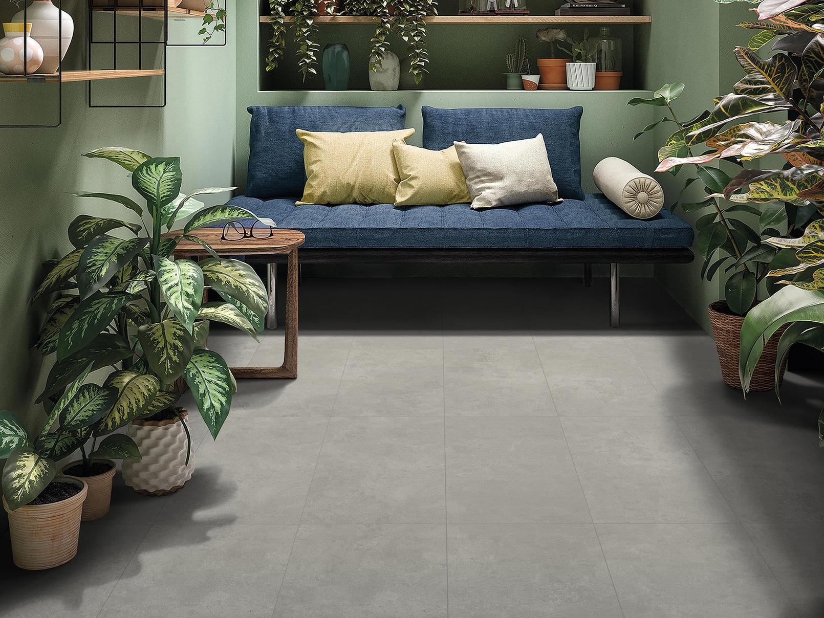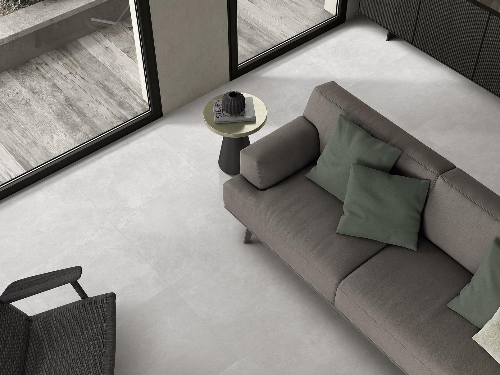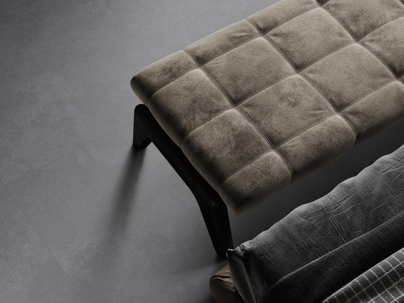 The porcelain enamel Soho is characterized by the subtle texture and color variation of concrete, giving it an urban and timeless look.
