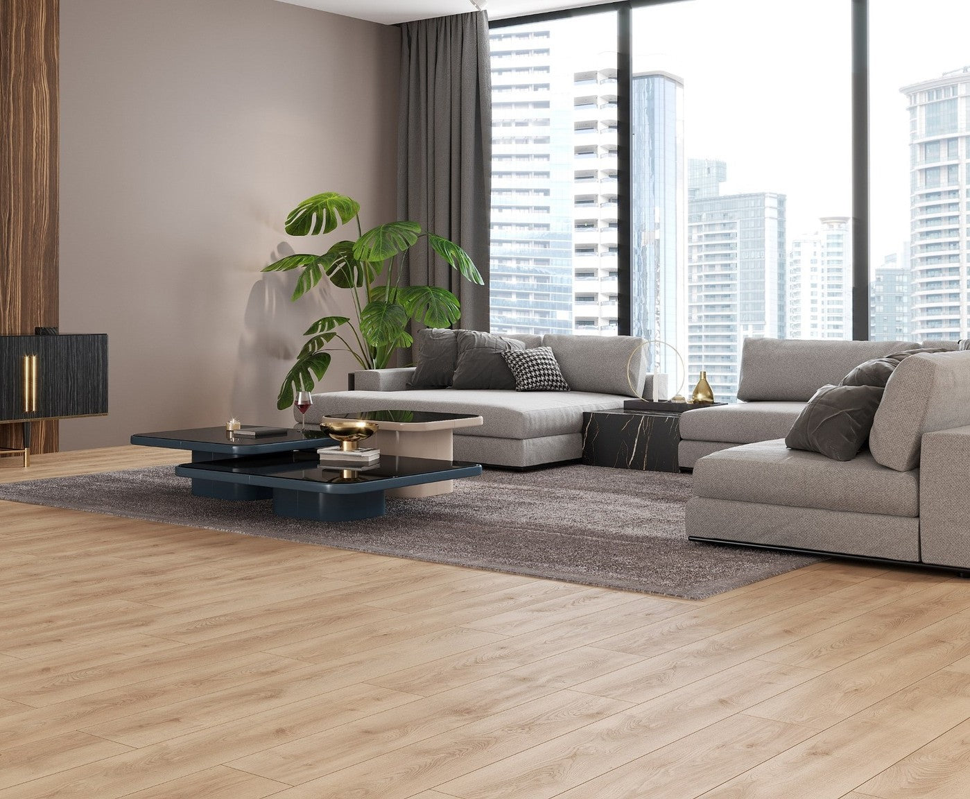 The floor of the SWISS collection looks like real wooden planks. A robust floor (use class AC5) resists abrasion and scratches.