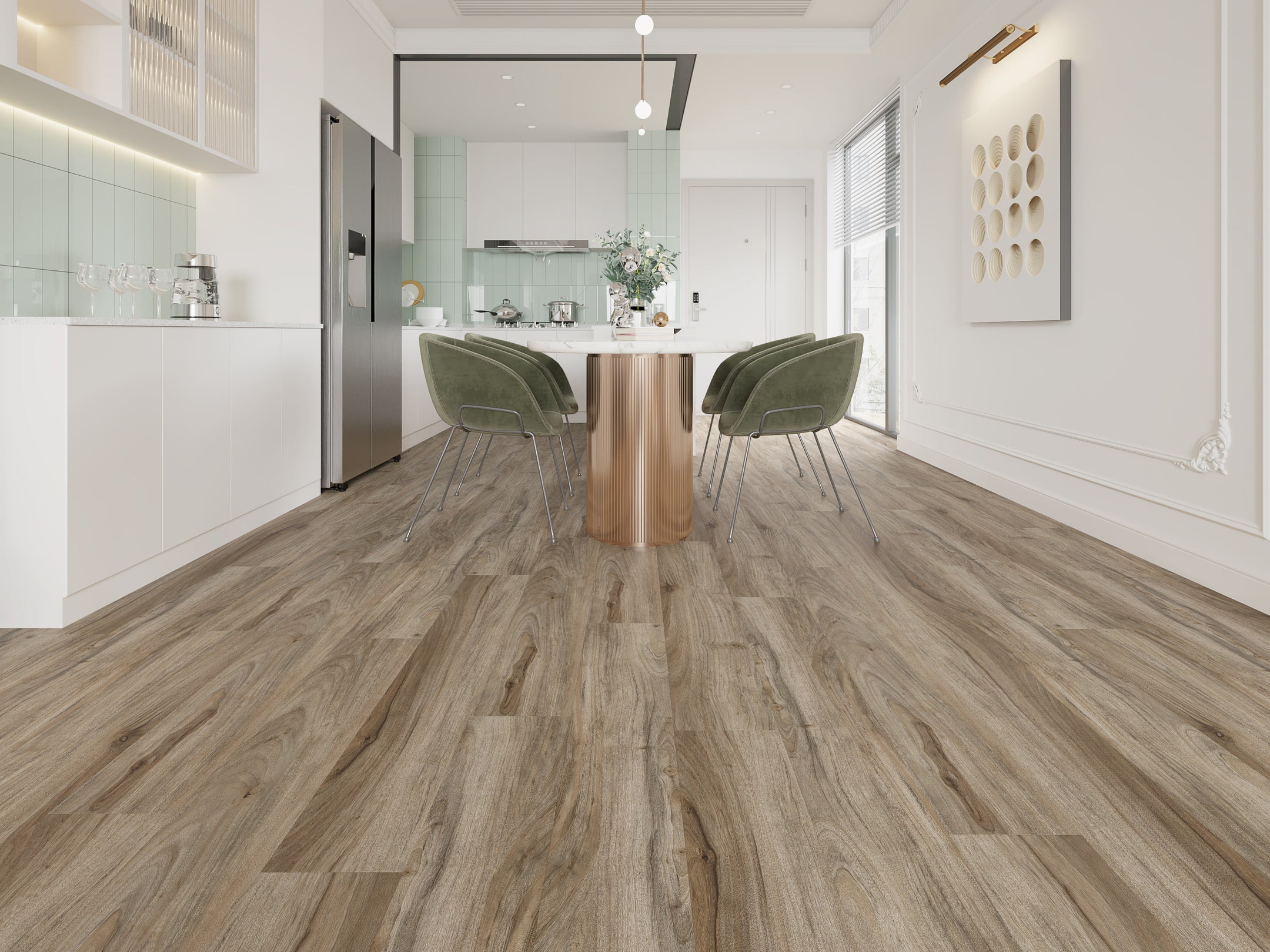This premium vinyl floor is durable and easy to maintain, and water and stain resistant. And its "click" system allows easy and fast installation.