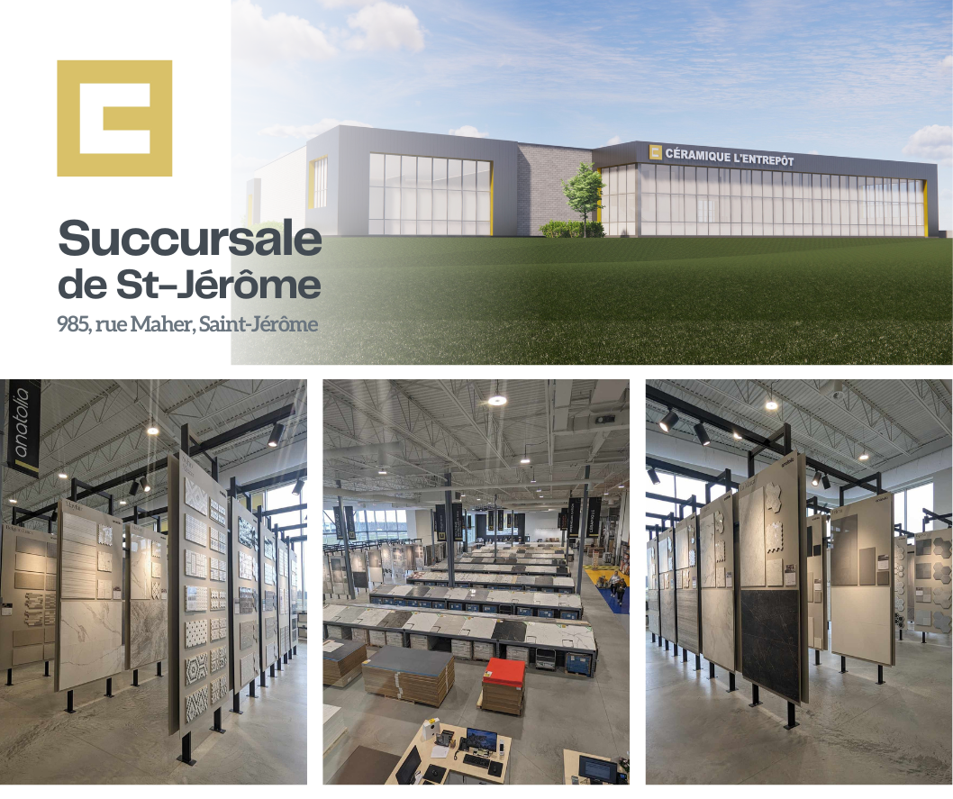 En avril 2018, une 2e succursale ouvre ses portes au 1740, boulevard St-Antoine à St-Jérôme. Constatant une clientèle de plus en plus grandissante dans la région des Laurentides, Céramique L’Entrepôt concrétise un important projet de relocalisation de cette succursale.