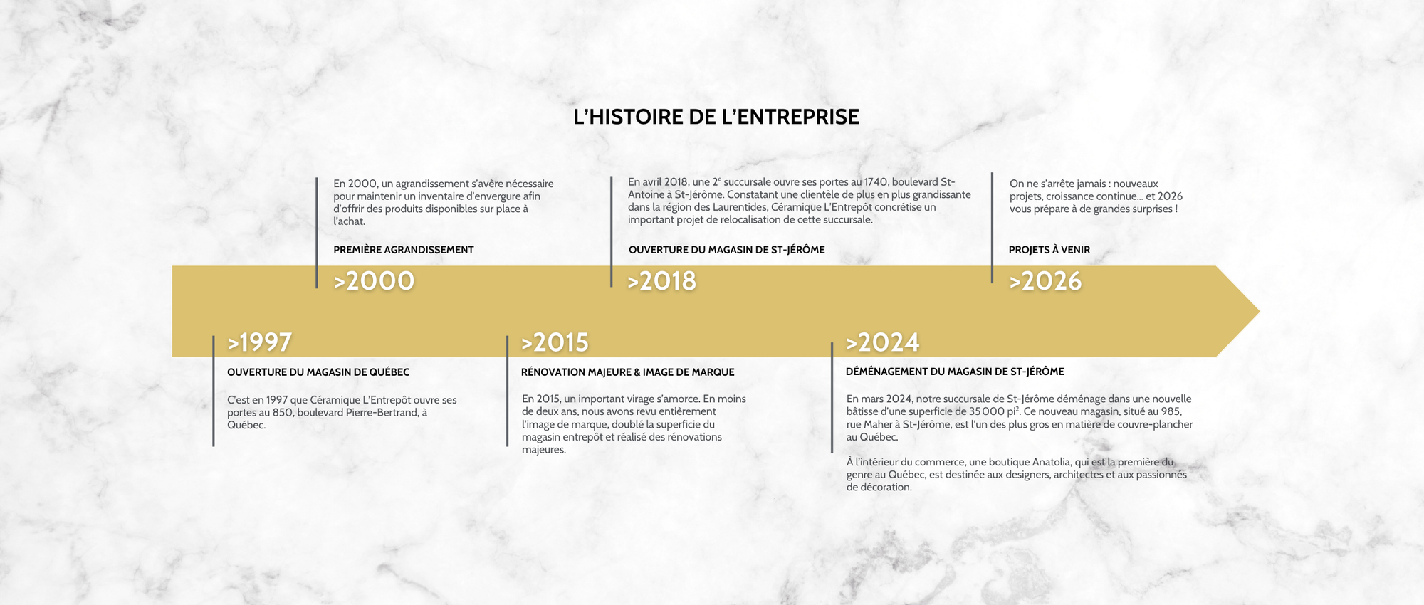C’est en 1997 que Céramique L’Entrepôt ouvre ses portes au 850, boulevard Pierre-Bertrand, à Québec.
