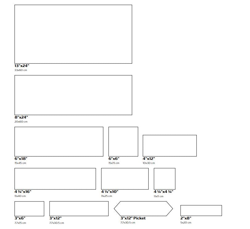 ▫ Épaisseur : 3x6 (6,3mm) 2x8 (7mm) 3x12 (7,3mm) 4x12 (7,3mm) 4,25x16 (8mm) 13x24 (8mm)