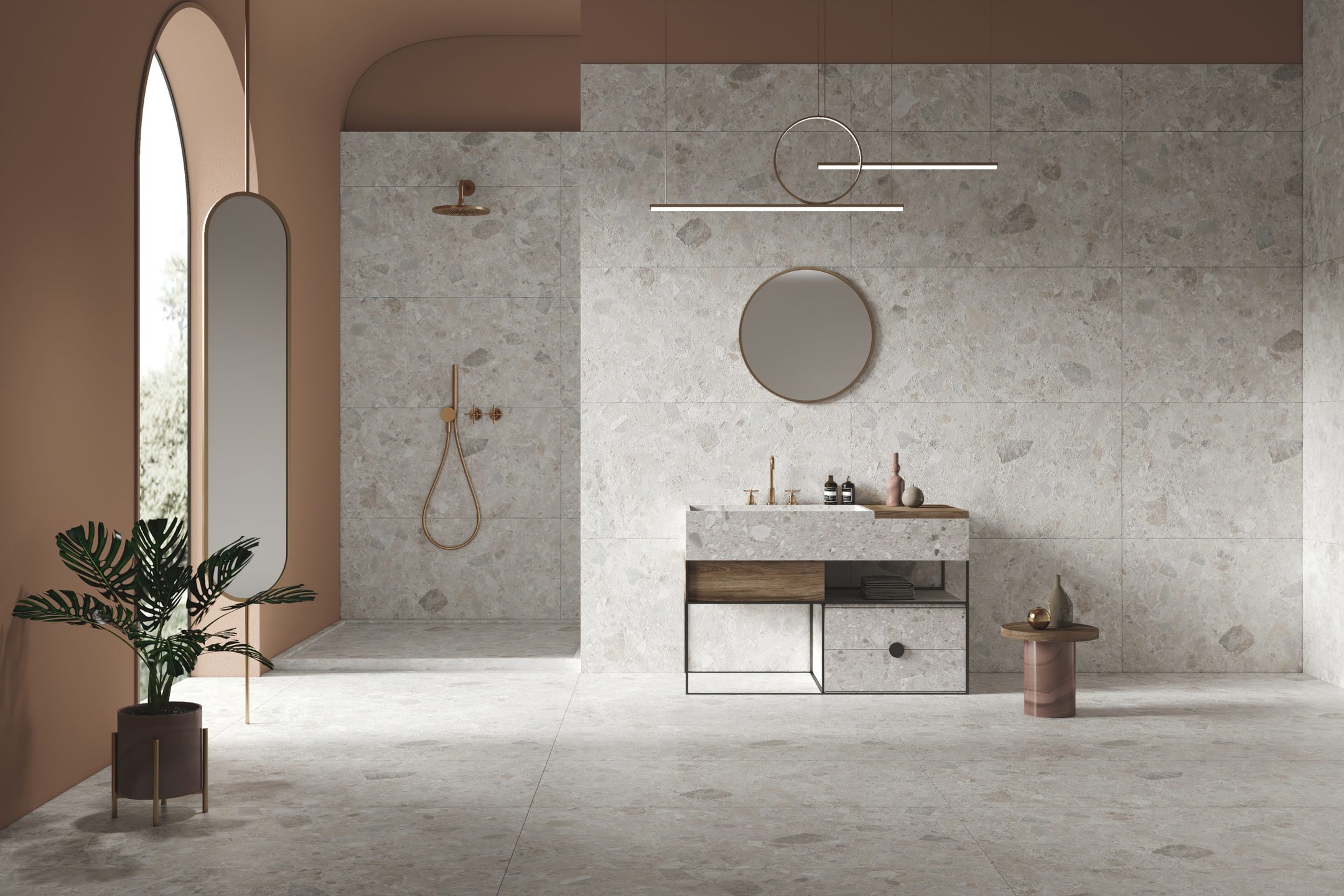 ROBUSTA est un carrelage aspect « Ceppo Di Gre » qui propose des couleurs douces et chaleureuses. Les morceaux et fragments présentent un aspect raffiné et naturel.