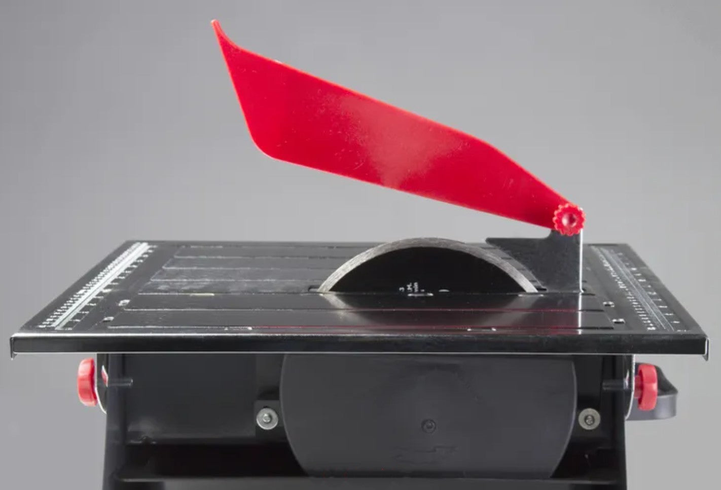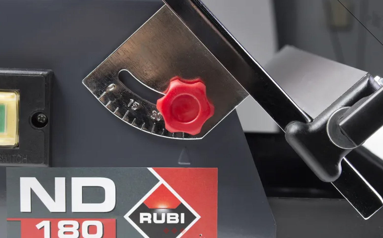 La scie à carreaux ND-180 comprend également une butée latérale pour les coupes répétitives et un gabarit pour les coupes à 45° d’angle.