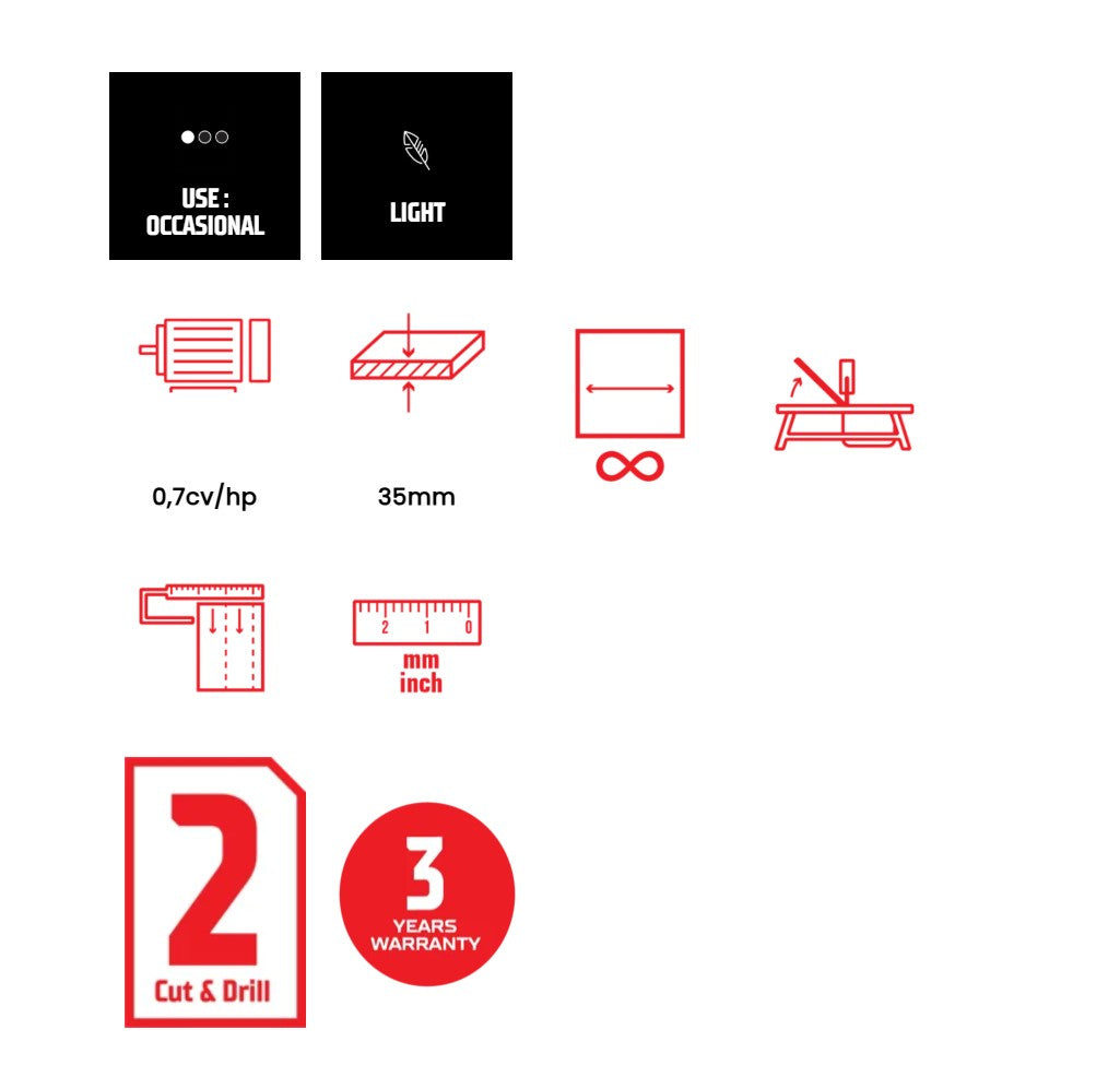 Son moteur monophasé de 0,7 CV comprend un protecteur thermique qui le protège contre les moments de force excessive.