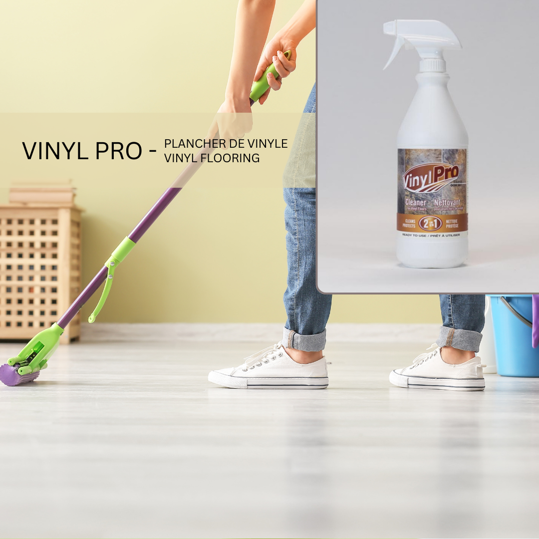 Faites votre entretien régulier avec Vinyl Pro! Facile à utiliser, il est le produit parfait pour effectuer un nettoyage rapide et efficace de vos planchers de vinyle.